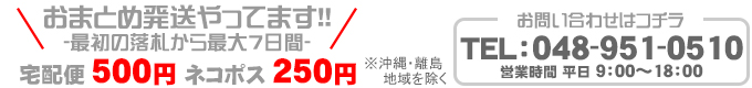発送後、メール・連絡掲示板にて発送完了 (追跡番号)のご連絡をさせて頂きます。 |